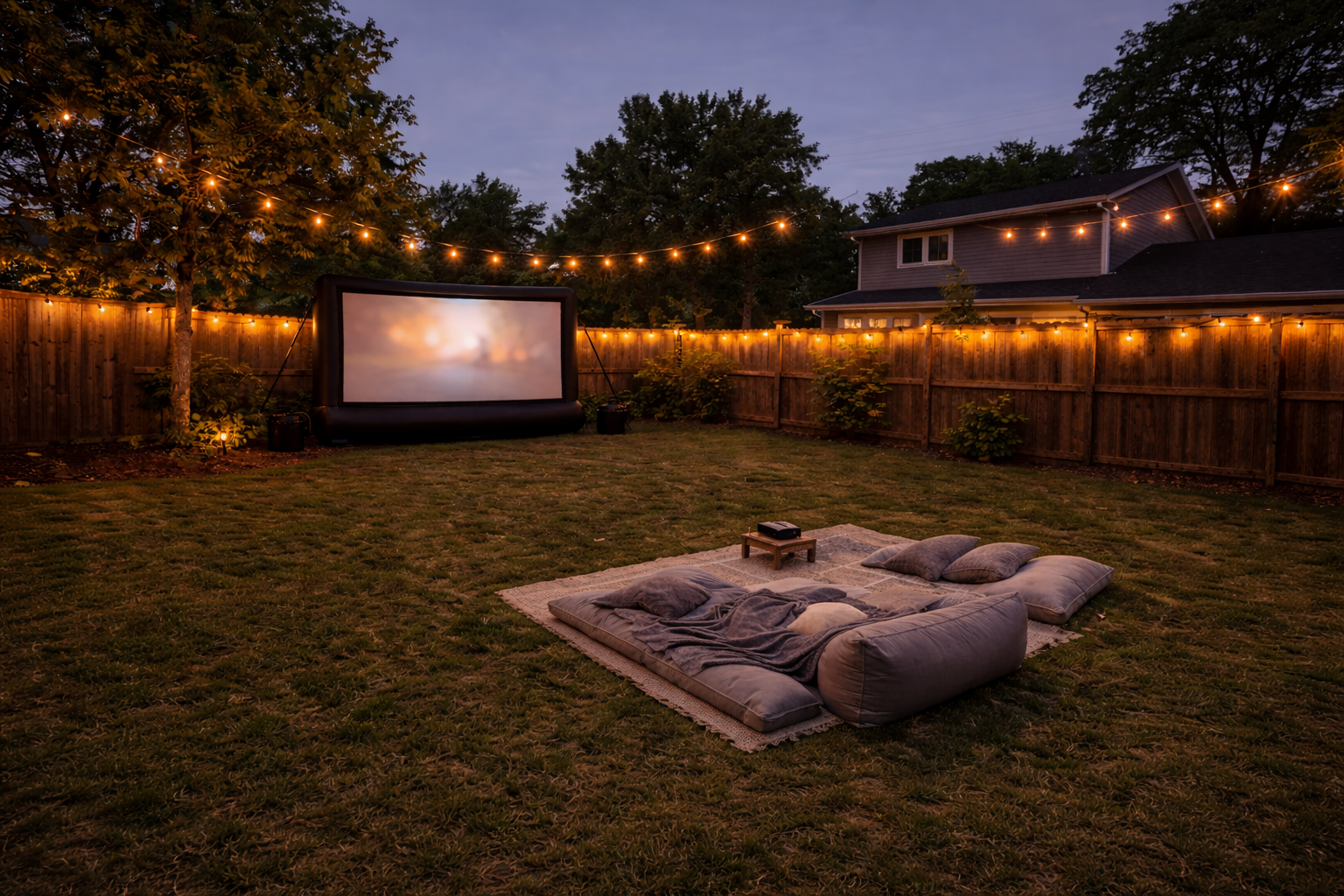 We show up, set up the full experience in your backyard, and make sure everything is working.
