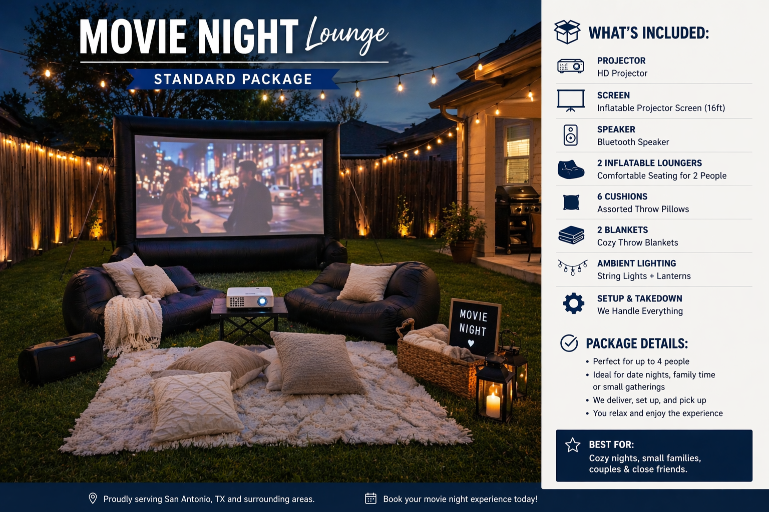 Pick the package that fits your event. Movie night or day party — both delivered and set up.